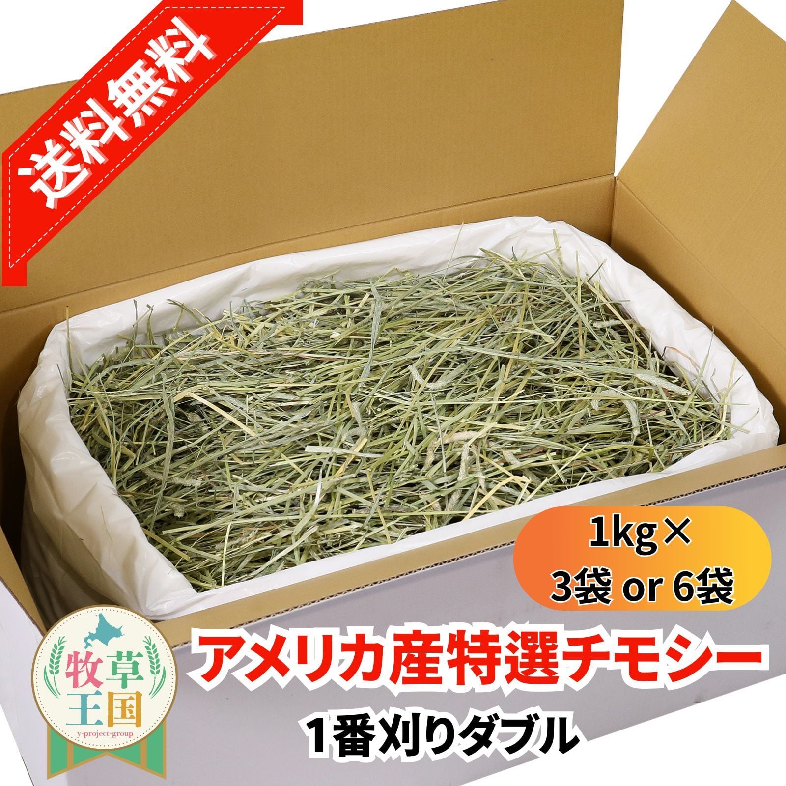 牧草王国 アメリカ産プレミアムチモシー1番刈りダブル 1kg×6袋